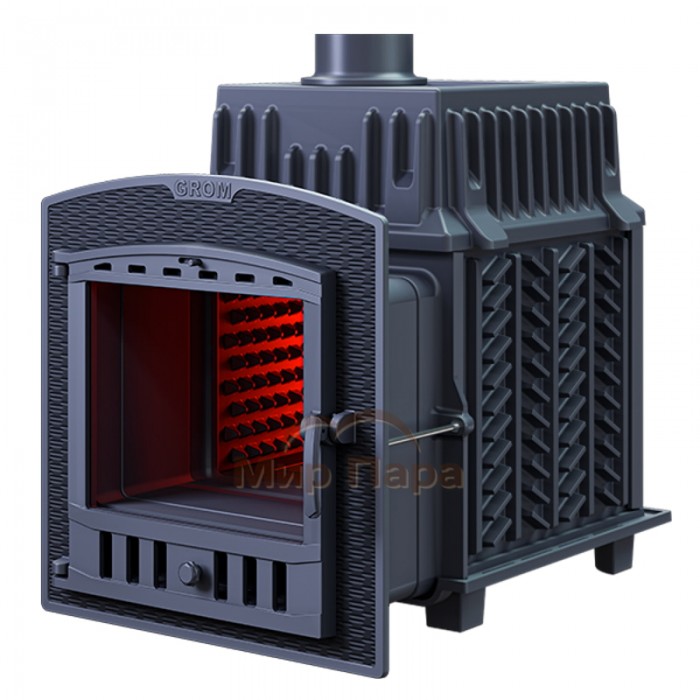 Чугунные банные печи «Гром» – это высокотехнологичные изделия повышенной прочности, предназначенные для отопления парильных помещений индивидуального и коммерческого использования. Печи являются теплоаккумулирующими, оснащены массивными каменками прямого нагрева для возможности длительной генерации качественного мелкодисперсного пара в режиме «русская баня». Печи серии «Гром» предназначены для использования в парных объемом до 30 м3.