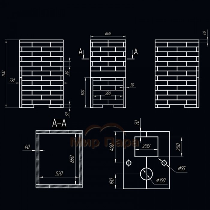 Описание Комплект Гефест Гром 40 (П2) Классика 1150/40 Талькохлорит кирпич