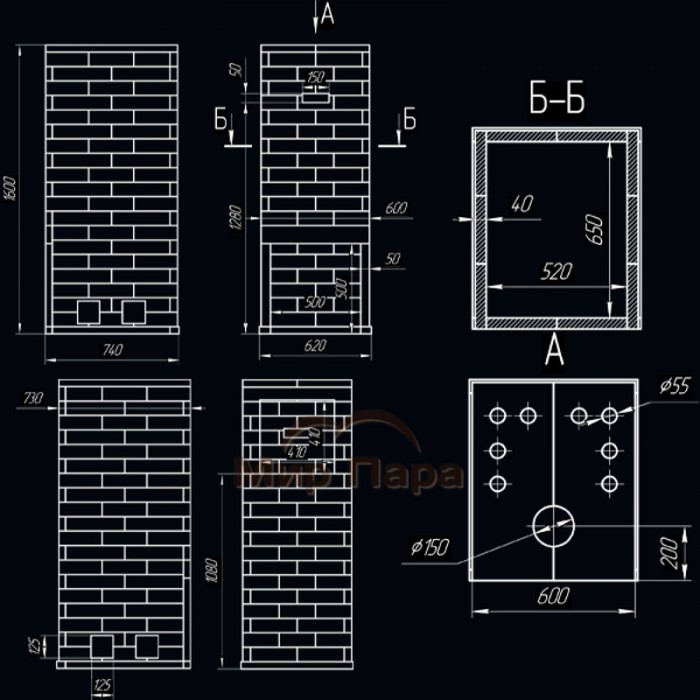 - Облицовка Русский пар 1600/40/40 Змеевик кирпич.