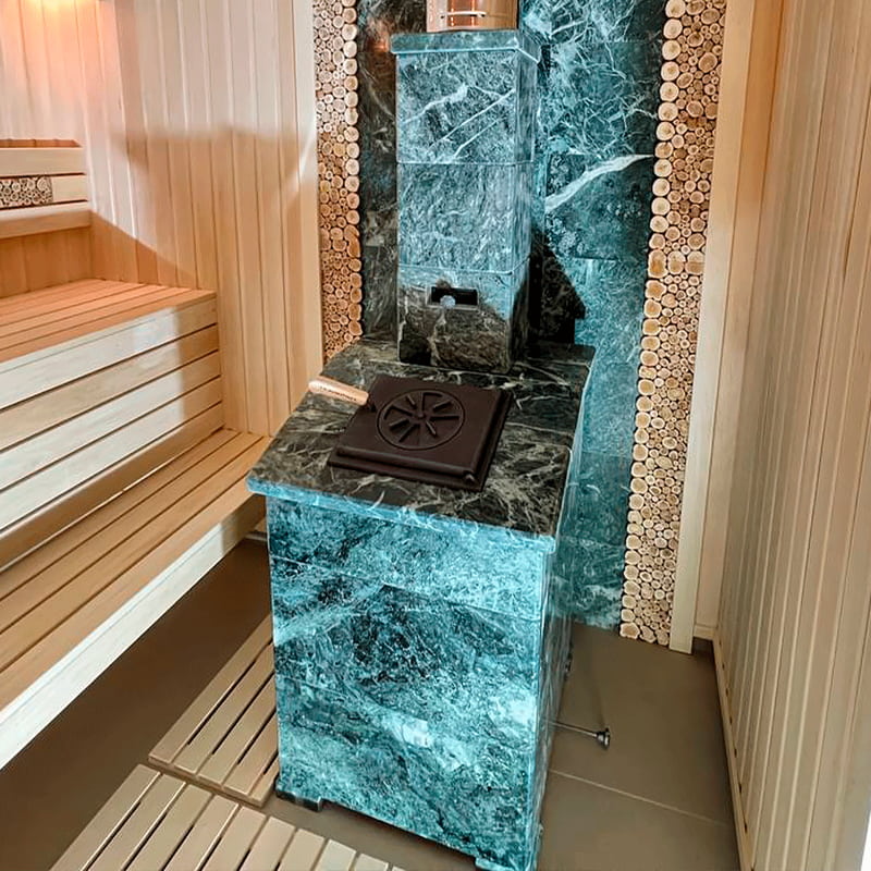 - Облицовка из камня создает дополнительный запас тепла и мягко излучает его, улучшая микроклимат парной и продлевая тепло после окончания топки.