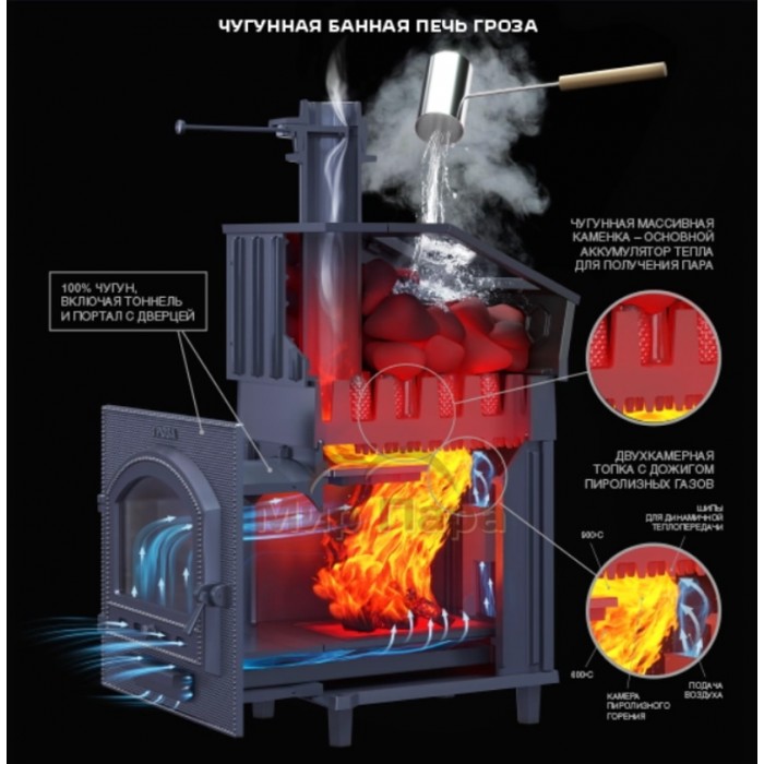 Чугунные банные печи серии «Гроза» – это высокотехнологичные изделия повышенной прочности, предназначенные для отопления