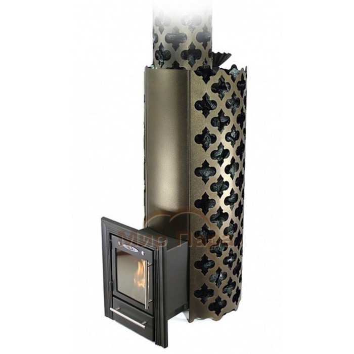Сетка-каменка имеет сложный восточный орнамент (отсюда название "Арабеска"), гармонирующий с Dark Bronze окраской корпуса. Передняя дверца «Люмина» с панорамным жаростойким стеклом (диаметр 28 см) подчёркивает современный стиль и открывает вид на пламя.