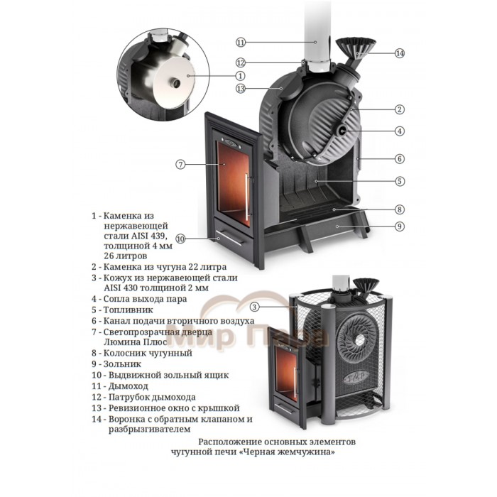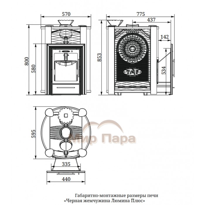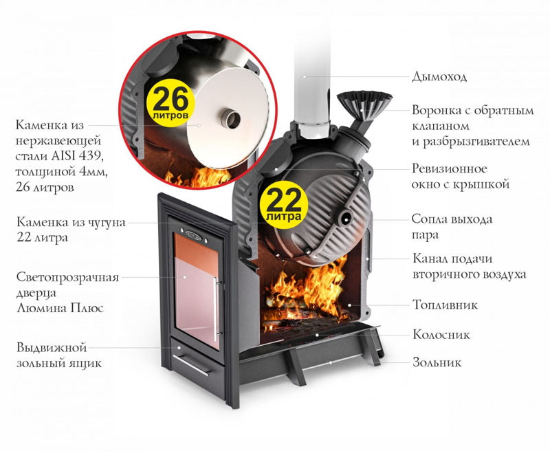 Банная печь Черная Жемчужина Люмина плюс с чугунной каменкой