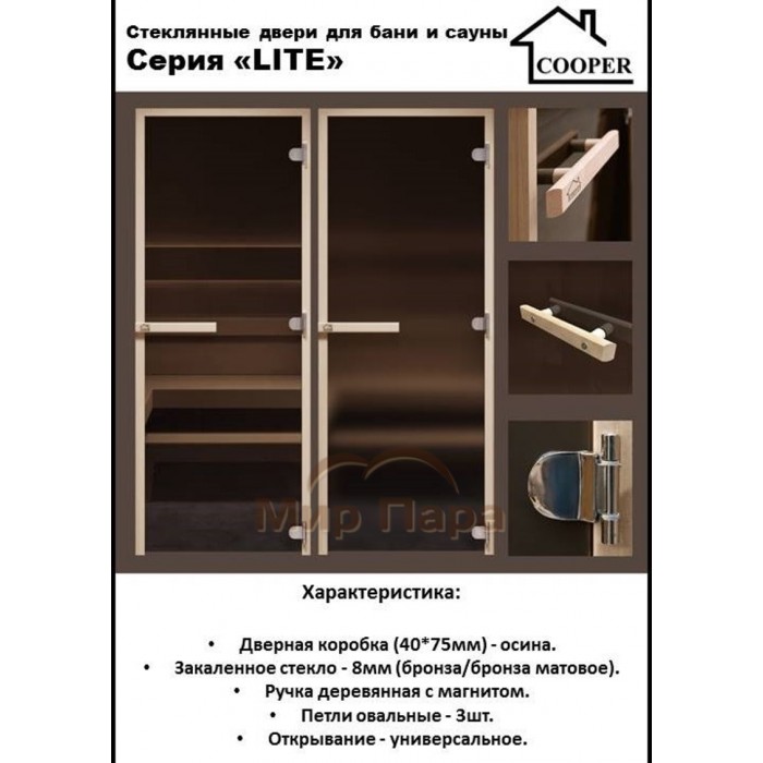 Дверь стеклянная для бани Cooper LITE 1800х700 Бронза матовая (коробка осина)