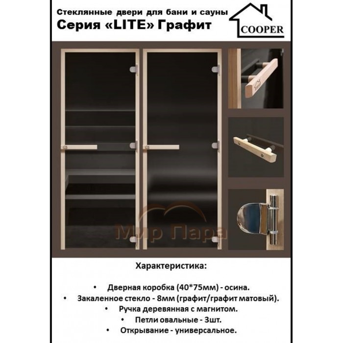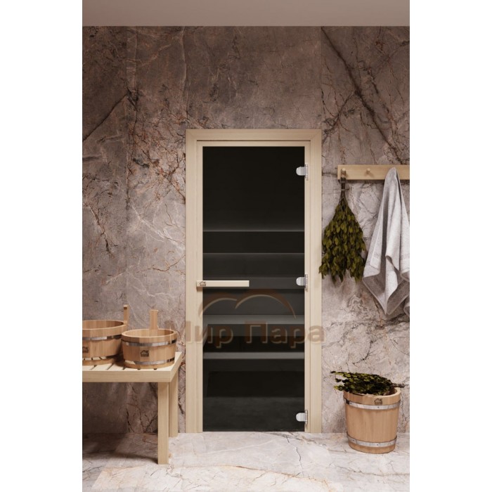 Дверь стеклянная для бани Cooper LITE 1900х700 Графит (коробка осина)