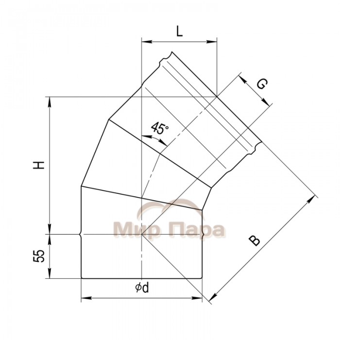 Колено 3 сек. угол 135° (430/0,5мм) Ф110