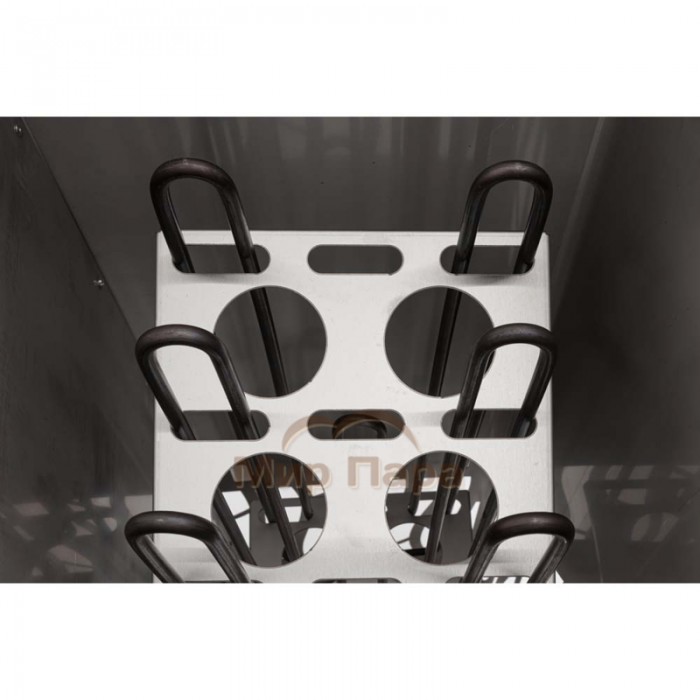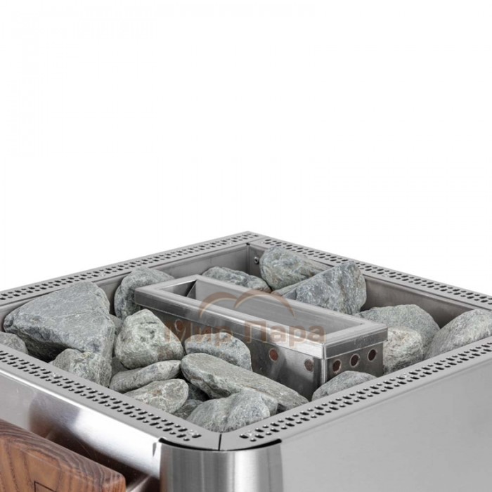 Вертикальные ТЭНы, расположенные практически по всей длине печи, обеспечивают равномерный и глубокий прогрев каменной массы. А возможность загрузки до 100 кг камней позволяет создавать много стабильного тепла и генерировать насыщенный пар.