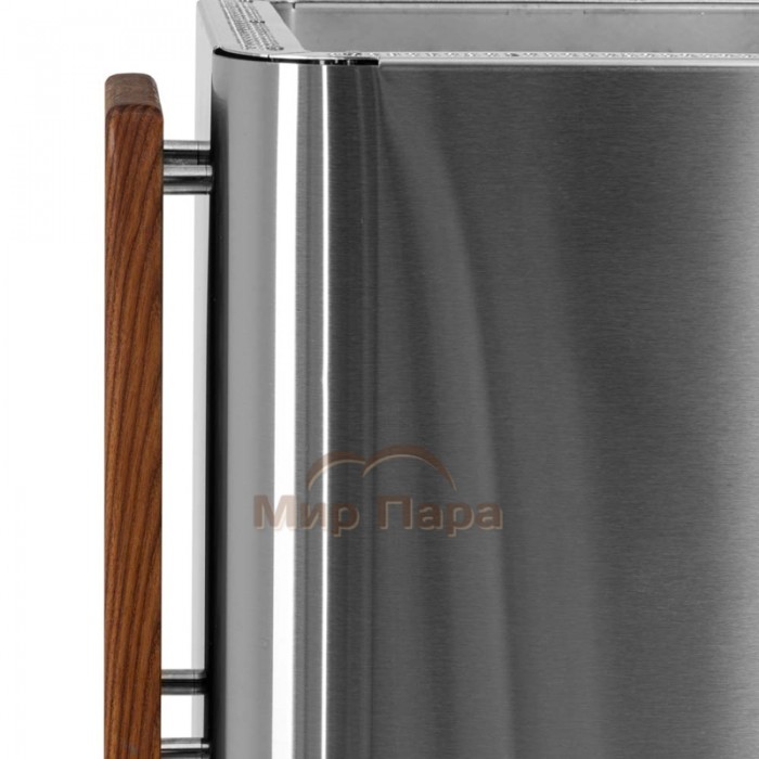 Встроенное ограждение из термоясеня по периметру печи защищает от случайных ожогов, а удобное крепление на задней части кожуха позволяет прикрепить каменку к стене для дополнительной надежности.