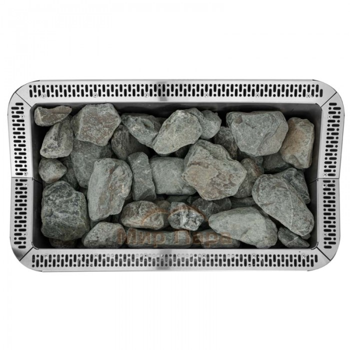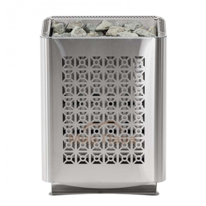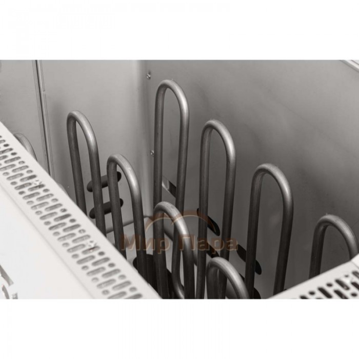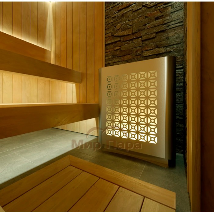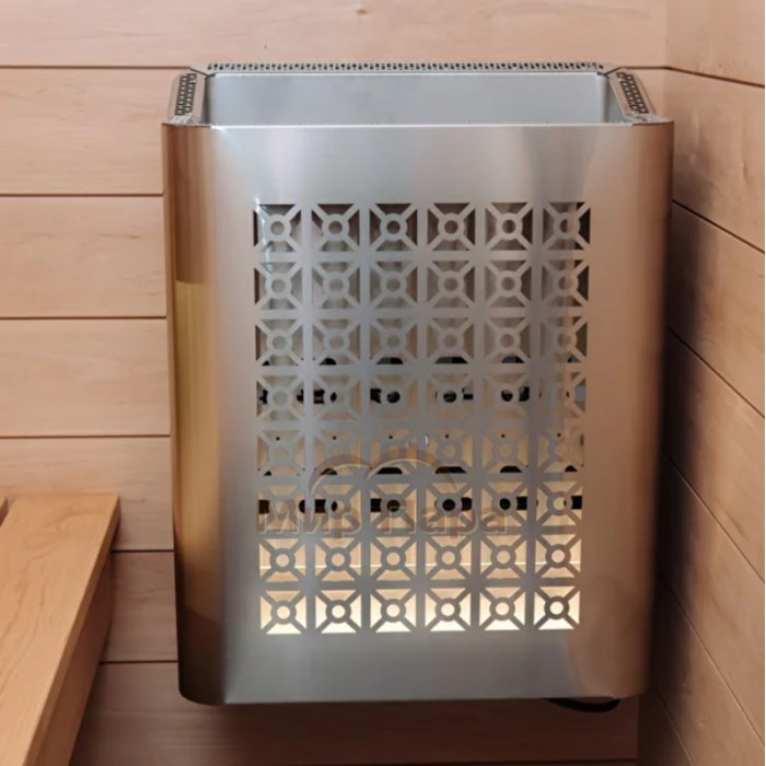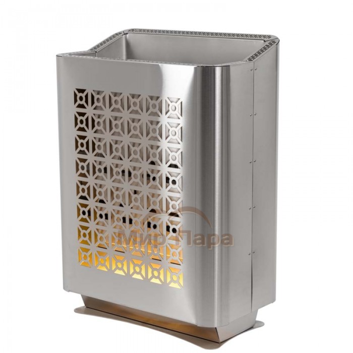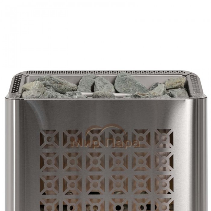 Корпус сохраняет свой внешний вид даже после длительного использования, не теряя блеска и не подвергаясь деформации. Предусмотрено специальное отверстие для подвода воды и подключения системы автоматической подачи пара SteamBoost. Система позволяет генерировать мягкий и комфортный пар, подавая воду на камни по нажатию кнопки. Также есть возможность установить парогенератор.