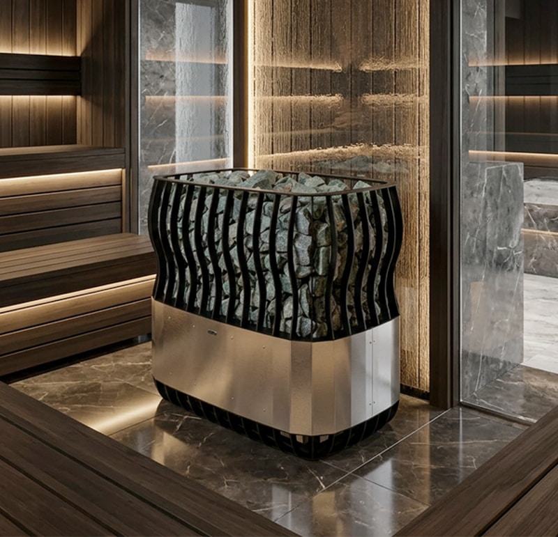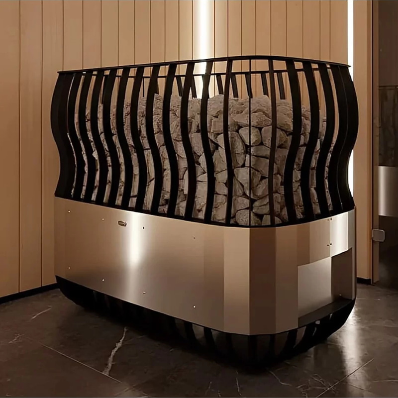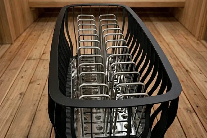 Конструкция продумана под интенсивную работу: дно приподнято над полом для усиления конвекции и ускоренного нагрева воздуха. ТЭНы из нержавеющей стали увеличенной толщины рассчитаны на тысячи часов работы при максимальной нагрузке, устойчивы к многократным циклам нагрева/охлаждения и подаче воды на камни. Равномерное расположение нагревателей исключает «холодные зоны» и обеспечивает стабильную температуру и качественный пар во всем объеме парной.