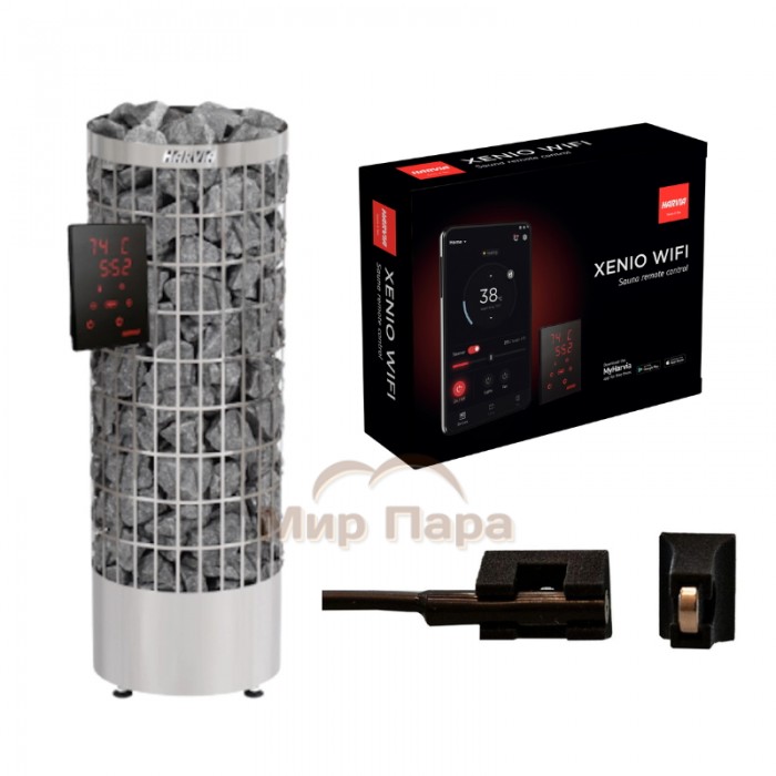 Чтобы Вы могли управлять сауной с Вашего смартфона, мы заменили входящую в комплект печи панель управления Harvia WX380 на панель управления Harvia Xenio WiFi и включили в набор дверной контакт.