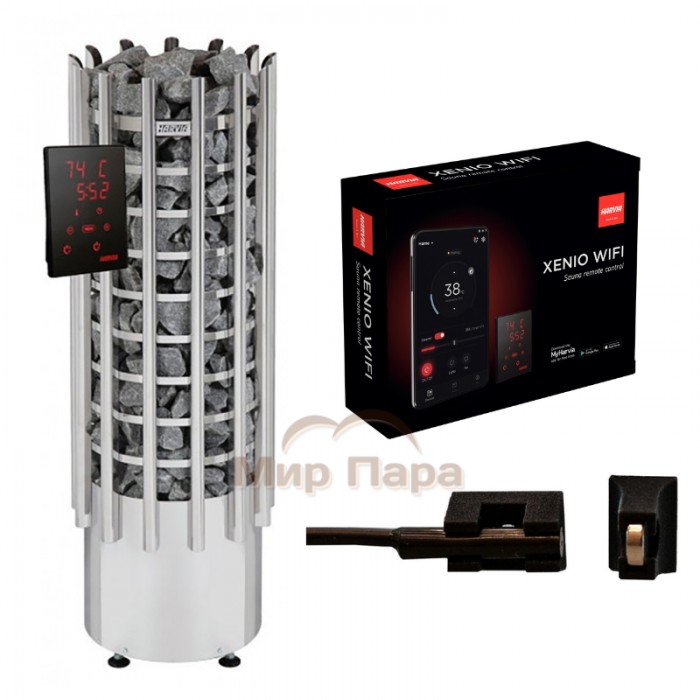В предлагаемой комплектации — с панелью управления Harvia Xenio WiFi и дверным контактом — печь полностью готова к управлению со смартфона с помощью мобильного приложения MyHarvia.
