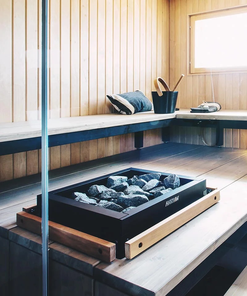 В качестве дополнительных опций для HARVIA Modulo предлагаются защитные поручни и защитные стеклянные стены. Стильная стеклянная стена не только предотвращает разбрызгивание воды, но и служит декоративным элементом.