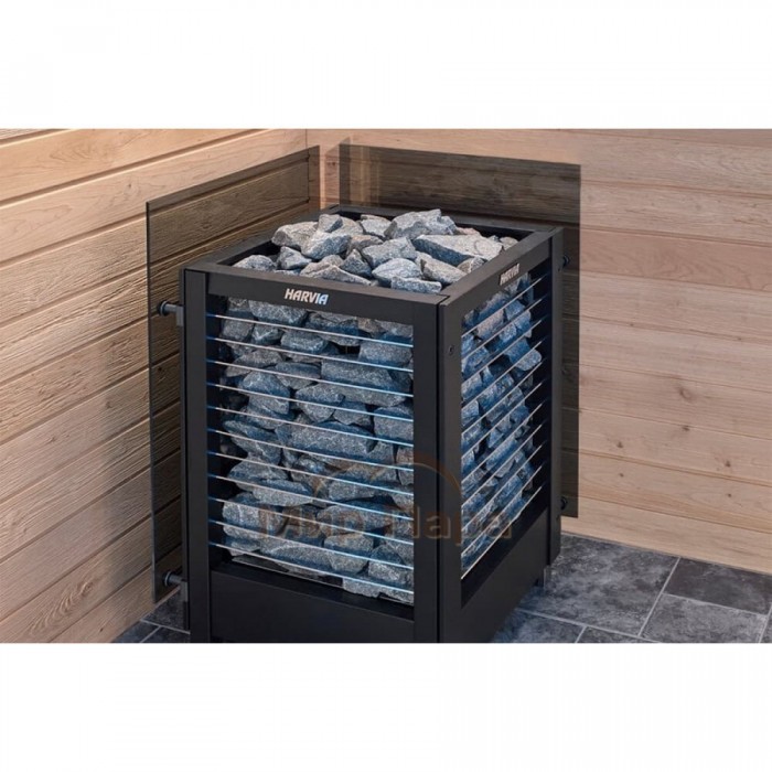 Каменки Modulo имеют интересный дизайн и идеально вписываются в современный интерьер. Корпус Harvia Modulo MD 160 G Black — открытый. Стенки корпуса выполнены в виде решетки, за которой хорошо видны камни.