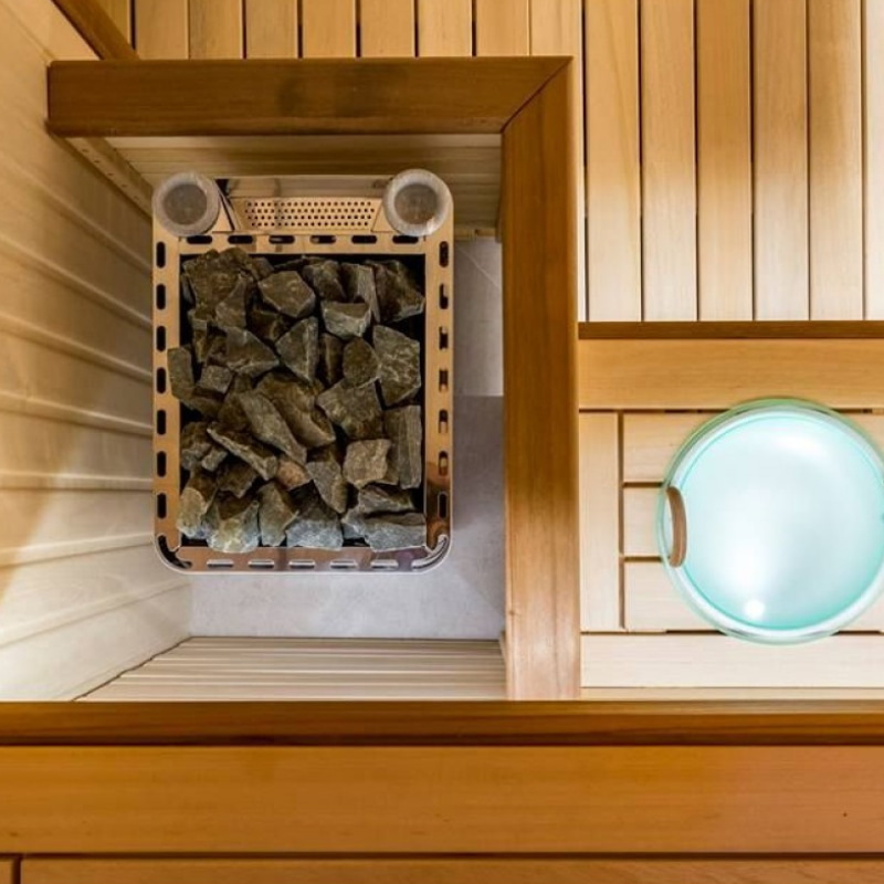 - Быстрое и равномерное нагревание воздуха в помещении происходит благодаря шести нагревательным элементам, которые установлены в конструкции для разогрева каменной массы.