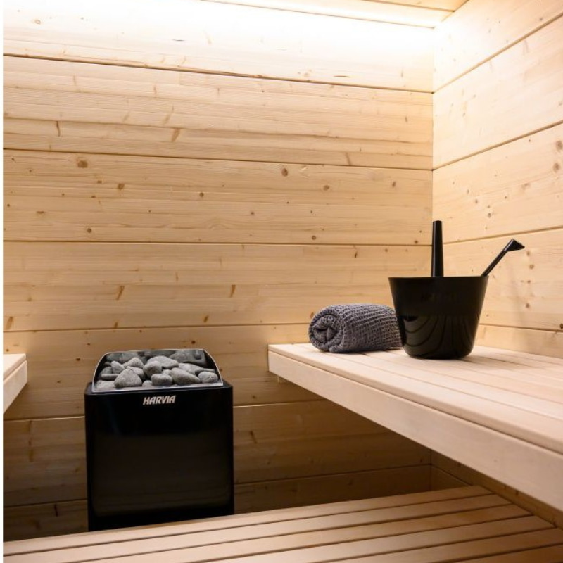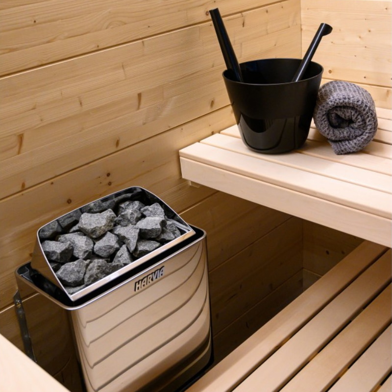Любители небольших саун, которые чаще всего строят владельцы в частном домовладении, могут специально подобрать для себя электрические печи серии Harvia Trendi, монтируемые прямо на стену.
