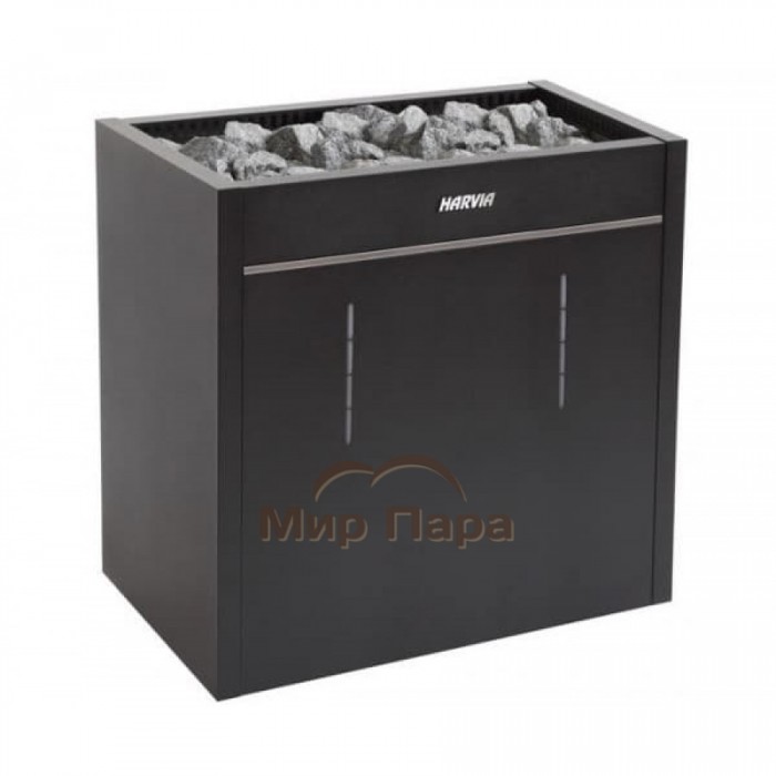Управляется каменка с помощью отдельного пульта HARVIA. В предлагаемой комплектации — с пультом управления Xenio Combi CX110CXW WiFi и дверным контактом — печь полностью готова к управлению со смартфона с помощью мобильного приложения MyHarvia.
