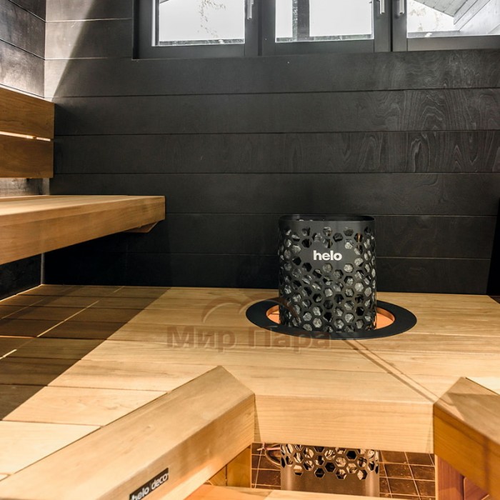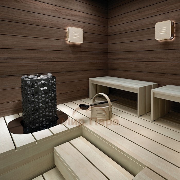 Электрокаменка Himalaya оснащена элегантной сетчатой рамой, которая может вмещать до 100 кг камней. Дизайн печи стильный и современный. Электрокаменка Himalaya устанавливается на полу и может быть интегрирована в скамейки сауны.
