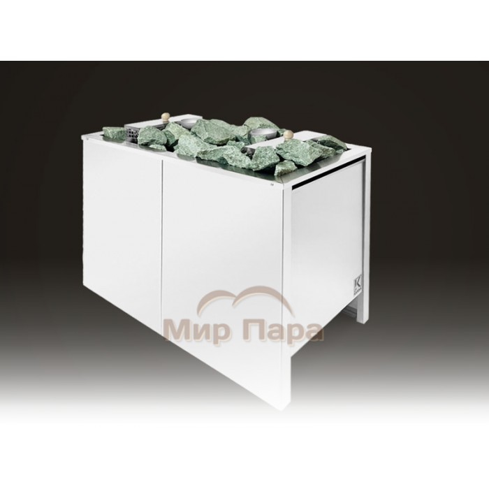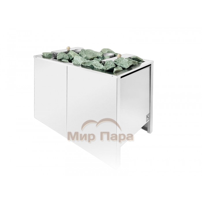 Электрокаменка имеет отсек для камней, который вмещает до 120 кг камней. Напольный монтаж.