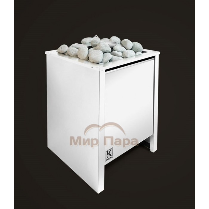 Электрокаменка имеет отсек для камней, который вмещает до 60 кг камней. Напольный монтаж.