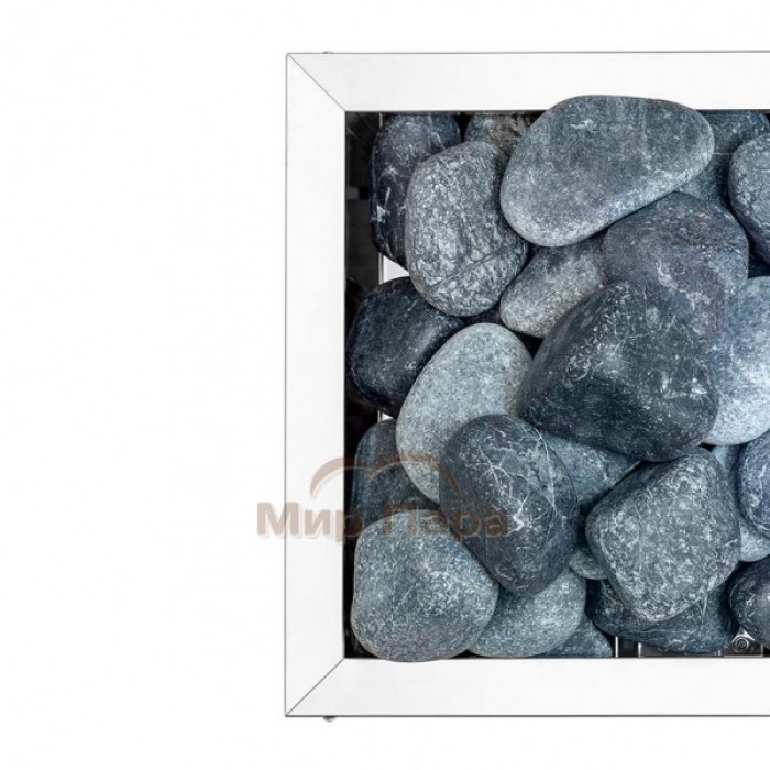 ТЭН из специальной нержавейки обладает повышенной электробезопасностью и большой тепловой инерцией. Представленная модель электрокаменки имеет отсек для камней, который вмещает до 35 кг. Она монтируется напольно. Электропечь не имеет в комплектации выносного пульта управления, он приобретается отдельно.
