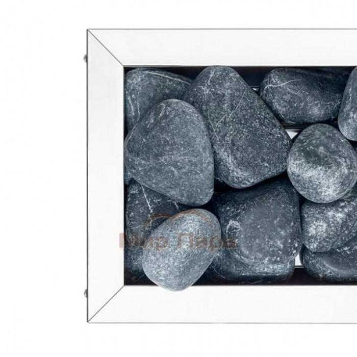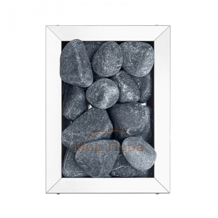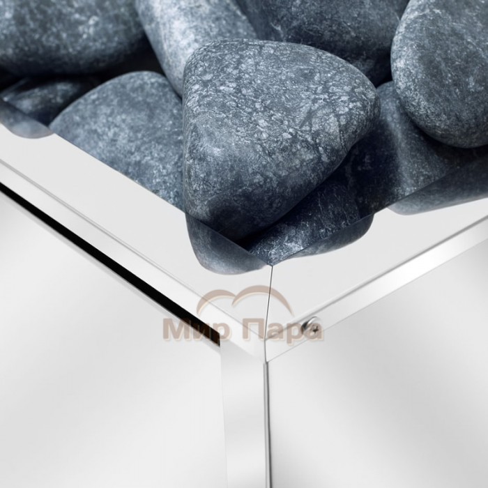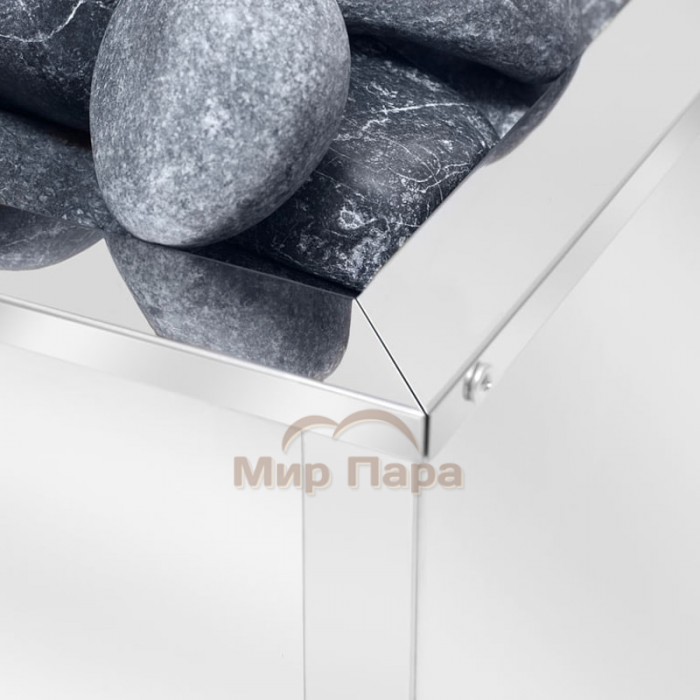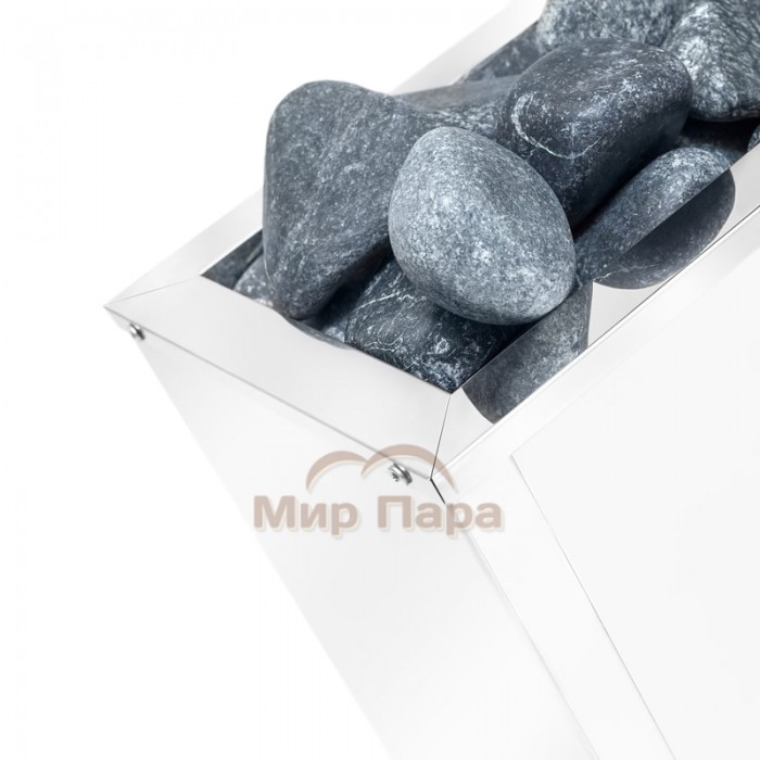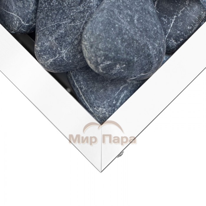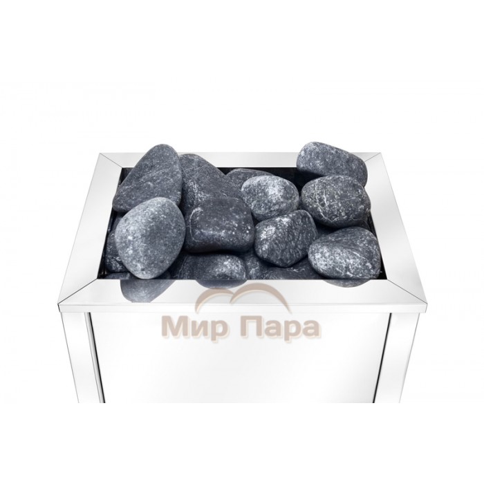 ТЭН из специальной нержавейки обладает повышенной электробезопасностью и большой тепловой инерцией. Представленная модель электрокаменки имеет отсек для камней, который вмещает до 15 кг. Она монтируется напольно. Электропечь не имеет в комплектации выносного пульта управления, он приобретается отдельно.