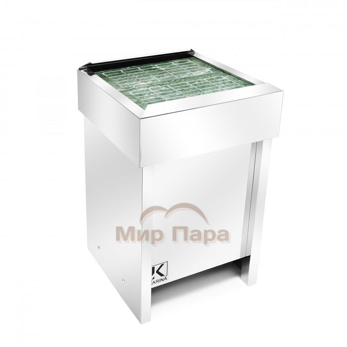 Корпус отличается стильным дизайном. Основным материалом является нержавеющая сталь, которая эффективно защищает электрические элементы каменки от воздействия влаги. Нержавеющая сталь устойчива к механическим нагрузкам.
