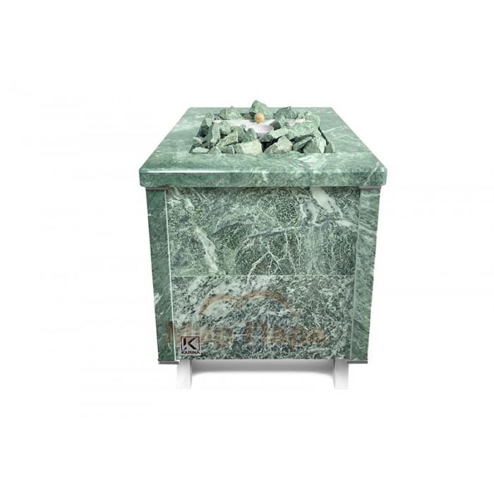 Электрическая печь KARINA Quadro 12 Змеевик представляет собой электрокаменку, полностью облицованную натуральным камнем, и способной прогреть семейные бани и сауны объемом до 16 м3. Электрическая каменка со всех сторон облицована натуральным змеевиком.