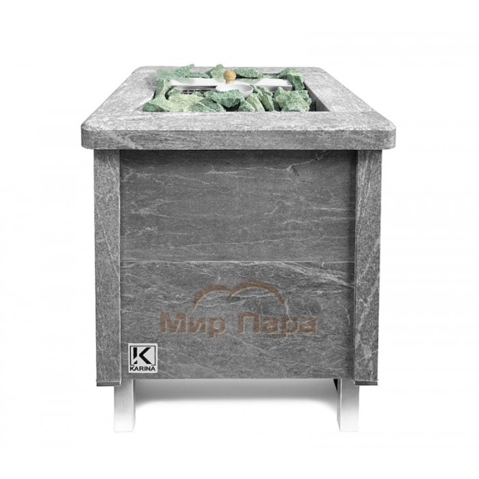 Электрическая печь KARINA Quadro 15 Талькохлорит – электрокаменка, облицованная натуральным камнем со всех сторон, и обладающая мощностью оптимальной для коммерческих саун объемом до 24 м3.