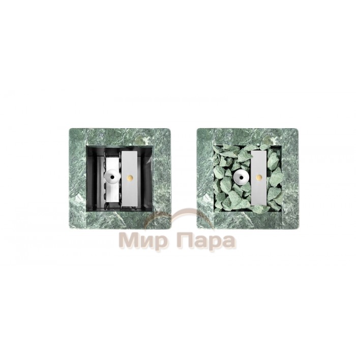 Электрическая печь KARINA Quadro 15 Змеевик представляет собой электрокаменку, полностью облицованную натуральным камнем, и способной прогреть коммерческие бани и сауны объемом до 24 м3. Электрическая каменка со всех сторон облицована натуральным змеевиком.