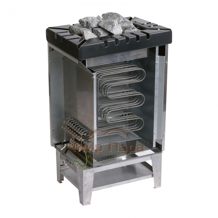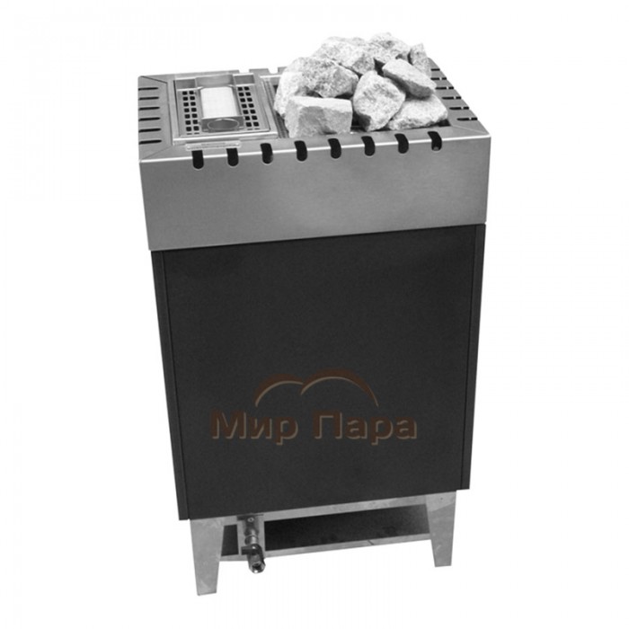 - Печь рассчитана на подключение к сети 380 В, имеет напольную конструкцию и вмещает до 20 кг камней, что обеспечивает хороший теплоаккумуляционный эффект и мощный пар при поддаче.