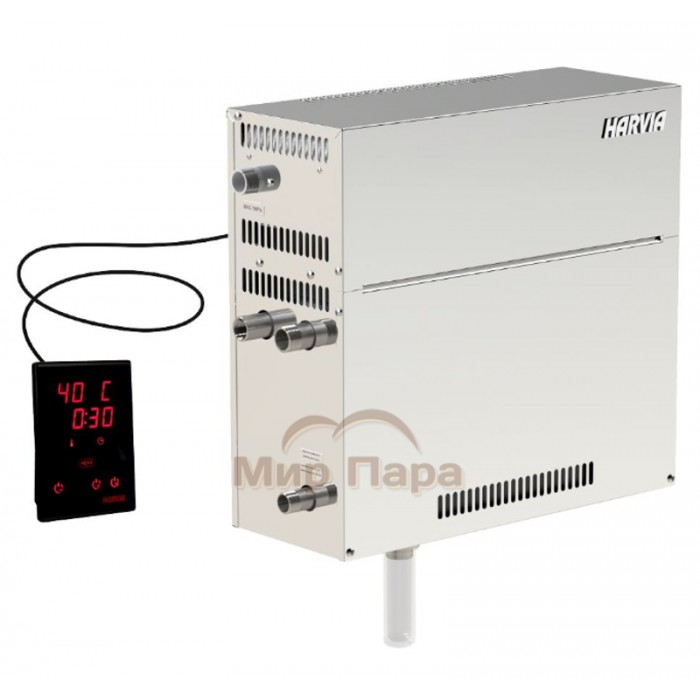 Одной из главных особенностей данного парогенератора является наличие встроенного модуля Wi-Fi, что позволяет управлять устройством удаленно через мобильное приложение Harvia. Это дает возможность включать и выключать парогенератор, а также настраивать параметры работы прямо из любого места, где есть доступ к интернету.