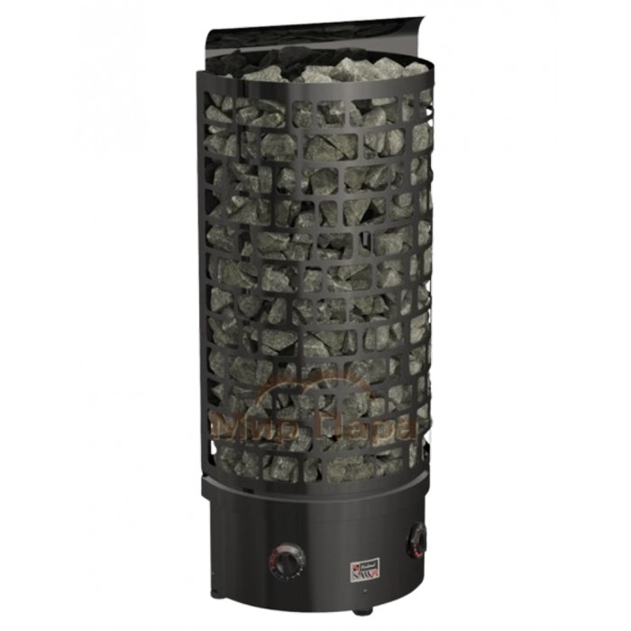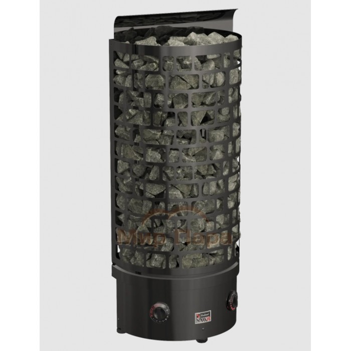 Sawo Aries - линейка печей с необычным дизайном. Внешне электрокаменки напоминают каменную башню. Нагревательные ТЭНы находятся по центру. Снаружи каркас печи выполнен в виде сетки, которая заполняется большим количеством камней для сауны.