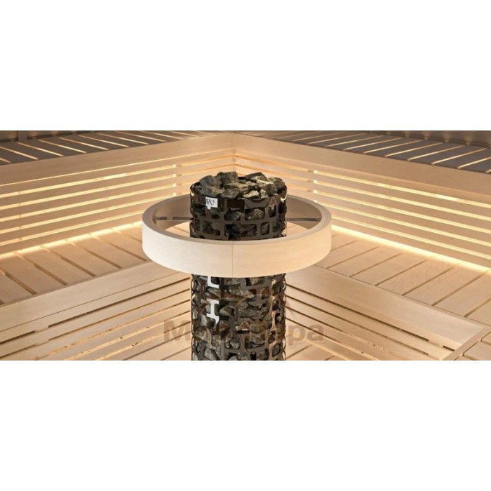 Электрическая печь Sawo Aries ARI3-75NB-BL-P-C имеет стильный и современный внешний вид. Каркас печи выполнен в виде черной сетки, что придает ей элегантный и привлекательный вид. Нагревательные элементы, ТЭНы, расположены по центру, обеспечивая равномерный нагрев камней и воздуха в сауне.