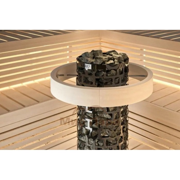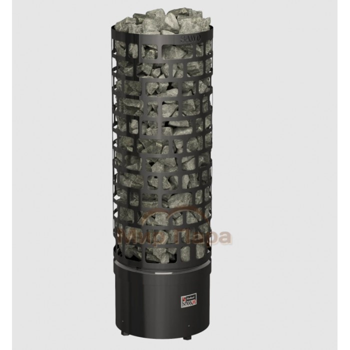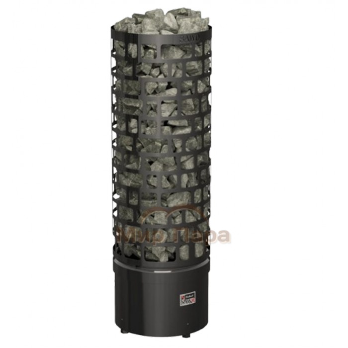 Сетка корпуса электрокаменки ARI3-90Ni2-BL-P-C стилизована под кирпичную кладку и при наполнении печи камнями, её внешний вид становится весьма эффективным. Вертикальная цилиндрическая форма корпуса делает поверхность максимально рабочей. Поддавать пар можно подливая воду на камни не только сверху, но и по бокам.