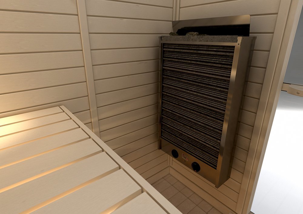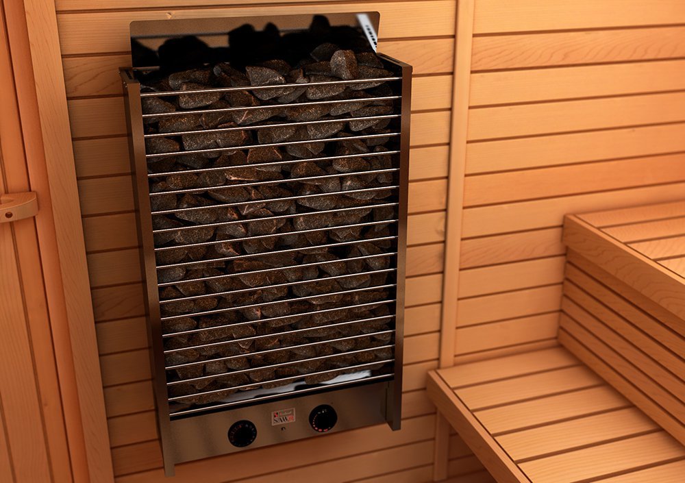 - Уровень влажности в парильном помещении можно регулировать, доливая воду на камни.