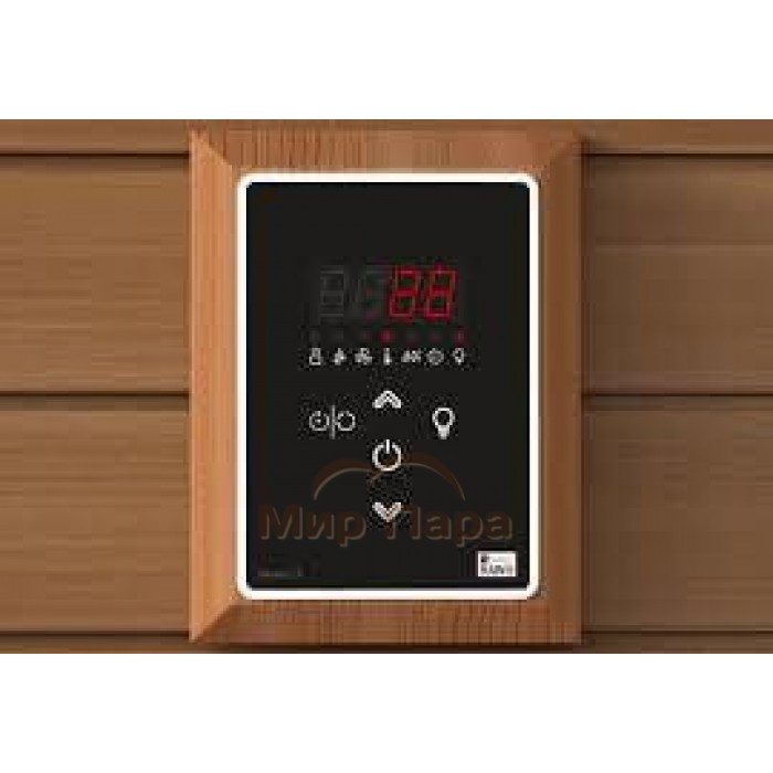 К данной модели подключается не только управление электрокаменкой, но и освещение c вентиляцией в сауне, что вдвойне удобно. Пульт позволяет настроить режим парения на ближайшие 0-12 часов и отложить старт на 1-24 часов, а также автоматизировать включение и выключение сауны. Последняя функция будет весьма прагматична при эксплуатации в коммерческой бане.