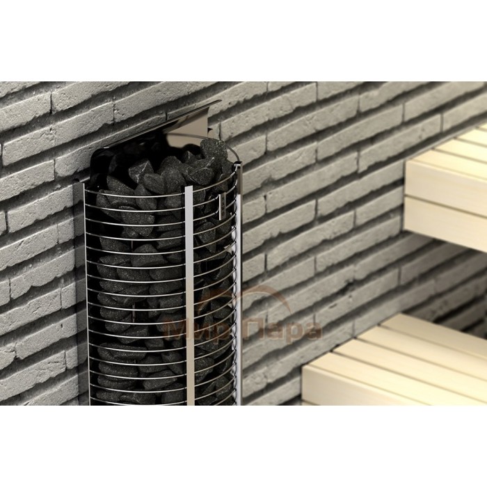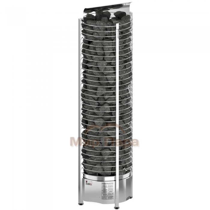 Электрокаменка TOWER TH6-90NS-WL-P от компании SAWO станет настоящим сердцем для вашей домашней сауны, или коммерческой парной средних размеров объёмом 8-15 м3. Конструкция каменки предполагает напольную пристенную установку и большую вместимость камней до 140 кг. Корпус печи имеет нетипичную форму вертикального полуцилиндрического каркаса. Нагревательные элементы находятся в центре электрокаменки и по краям обкладываются камнем. Готовая к эксплуатации печь напоминает каменную башню и позволяет поддавать воду во время парения не только сверху каменки, но и по всей поверхности корпуса. Это особенно сильно порадует любителей влажной русской бани.
