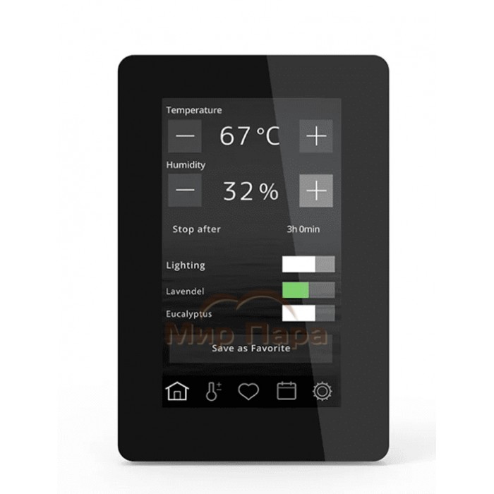 Сочетание элегантности, простоты и богатого функционала. Может управлять печами или парогенератороми Tylo, а также сопутствующим оборудованием. Например: освещением или вентиляцией.