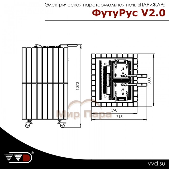 Описание Паротермальная печь VVD ПАРиЖАР ФутуРус V2.0 20 кВт Талькохлорит
