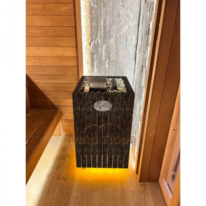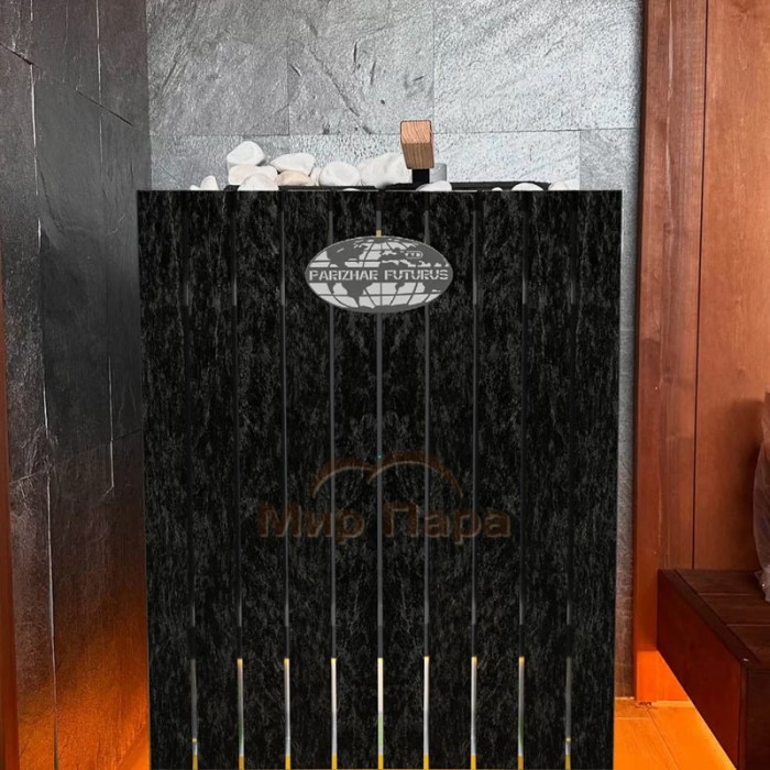Электрокаменка для бани ПАРиЖАР ФутуРус в облицовке из камня — это инновационная электрическая паротермальная печь с интеллектуальной системой управления, объединяющая три независимых блока: нагреватель воздуха, парогенератор и каменку. Она создает оптимальный температурно-влажностный режим в парной, сочетая русскую баню, сауну и хаммам. Каменка нагревается до более 500 °C, обеспечивая легкий, мелкодисперсный пар, идеальный для банных процедур.