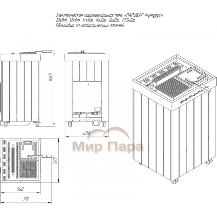 Описание Паротермальная печь VVD ПАРиЖАР ФутуРус 16 кВт/380 (метал/BLACK)