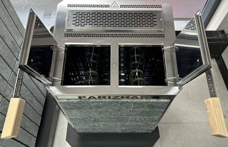 Линейка печей VVD ПАРиЖАР с облицовкой из натурального камня — это современное решение для создания комфортного и регулируемого микроклимата в банных парных любого объема. Каменные фасады печей не только придают изделиям эстетическую привлекательность и гармонируют с интерьером бани, но и способствуют более равномерному и длительному распределению тепла.