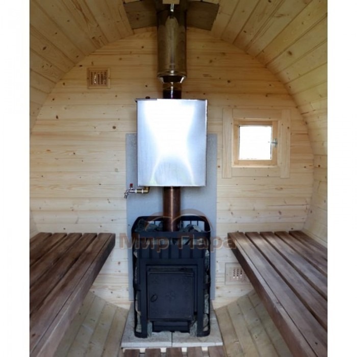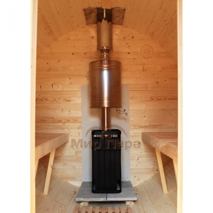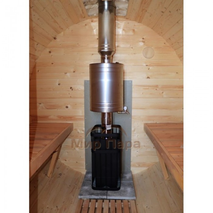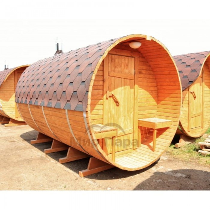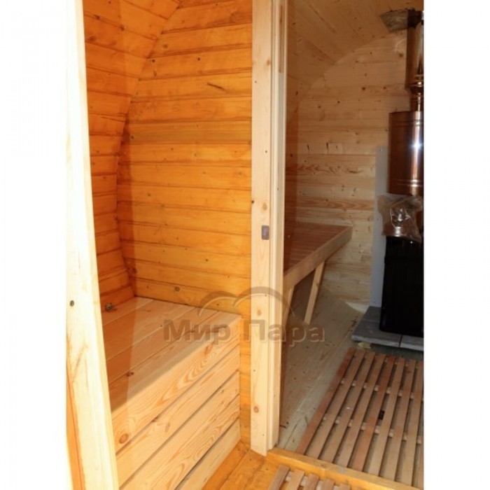 Баня-бочка ComfortProm 3 метра с печным узлом и предбанником + терраса 0,5м