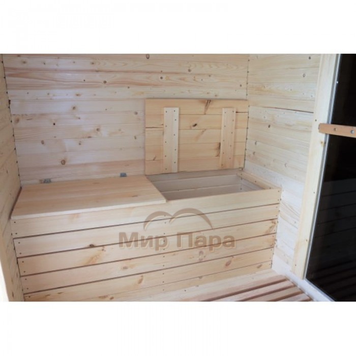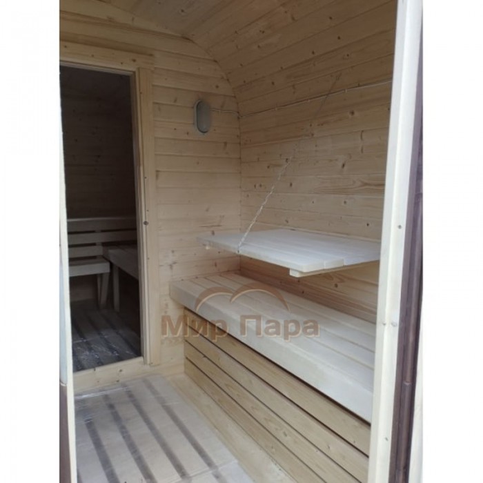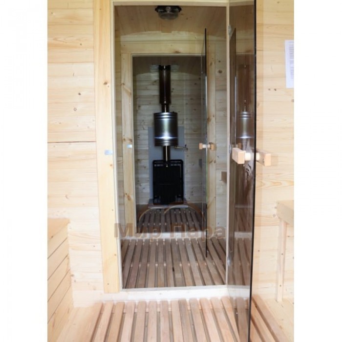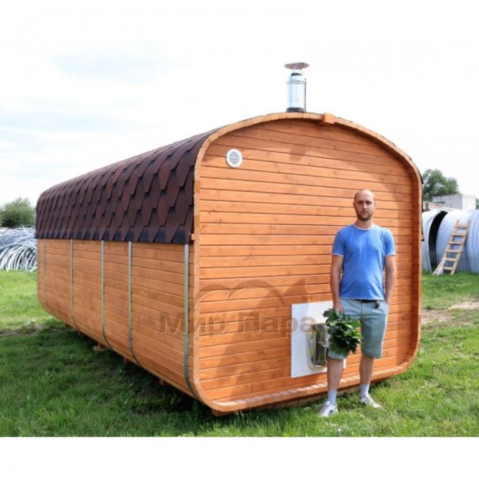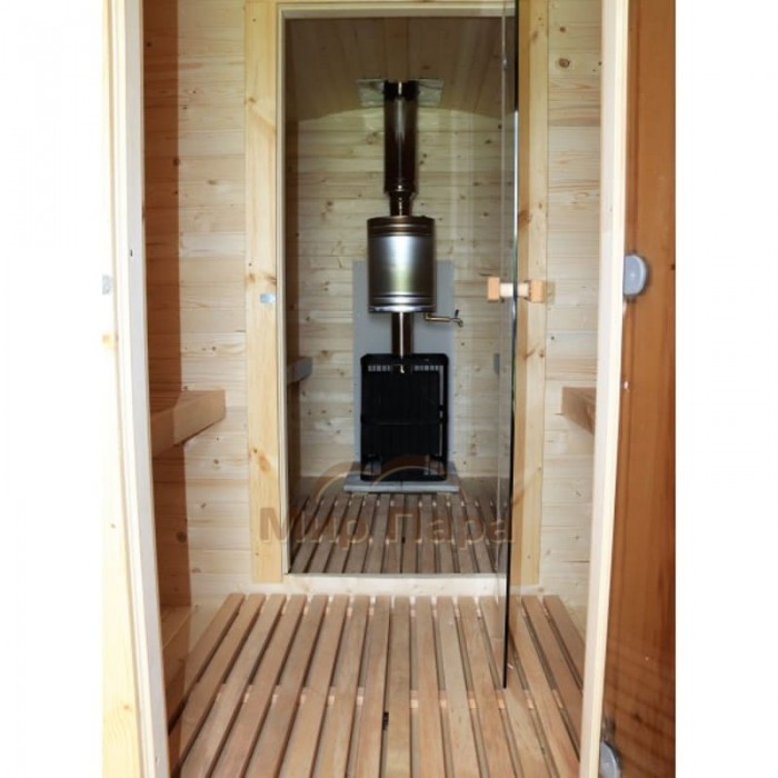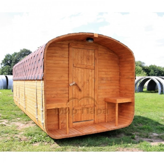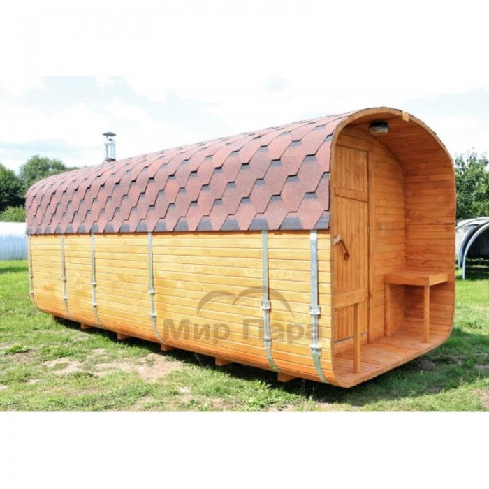 Баня квадро-бочка ComfortProm 5 метров с печным узлом, предбанником и помывочной + терраса 0,5м