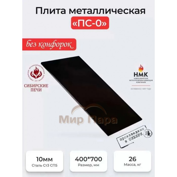 Плита НМК металлическая 400х700 ПС-0 (сплошная без конфорок)