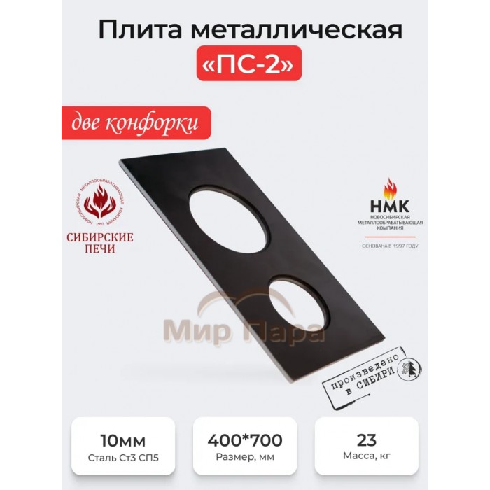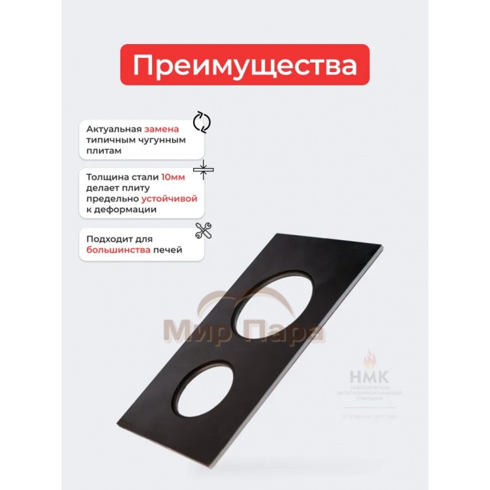 Плита НМК металлическая 400х700 ПС-2 (на две конфорки, без кружков)