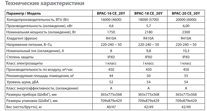 - 3 режима работы: охлаждение/осушение/вентиляция.