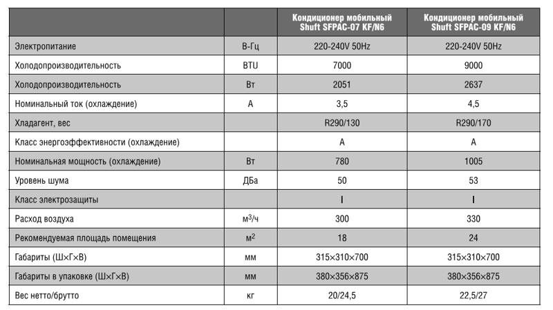 Описание Кондиционер мобильный SHUFT Frigo SFPAC-07 KF/N6