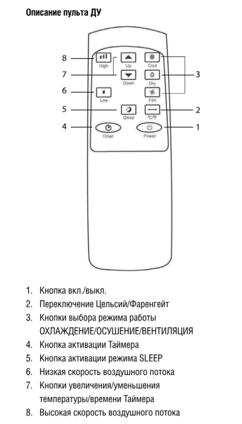 - 3 режима работы: охлаждение/осушение/вентиляция.
